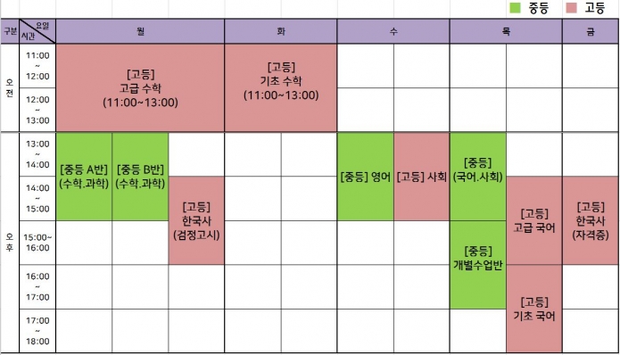 2019년 2월 검정고시 학습지도 시간표
