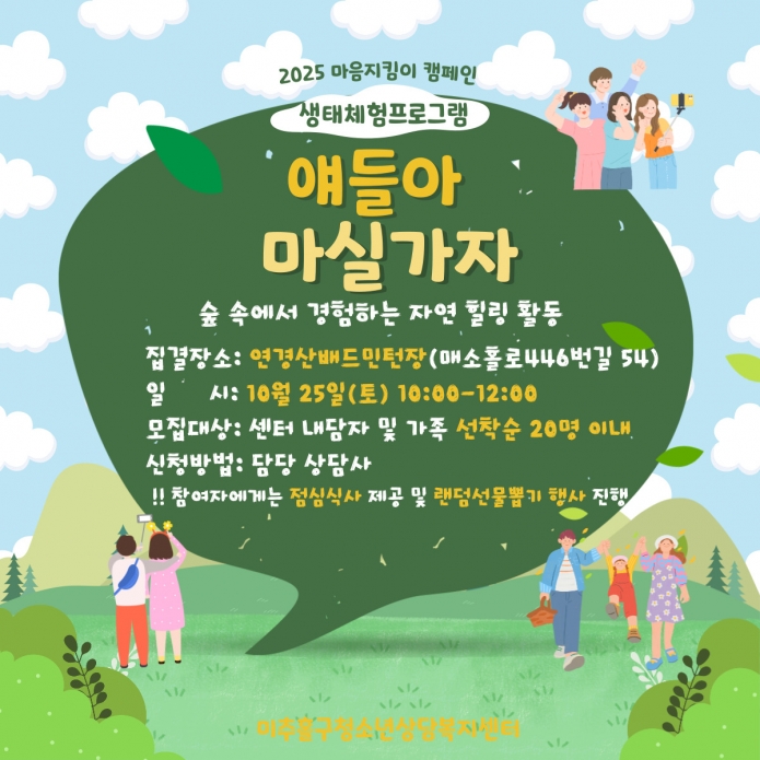 2025년 마음지킴이 캠페인 "청소년 생태 체험 프로그램, '얘들아, 마실가자'" 안내