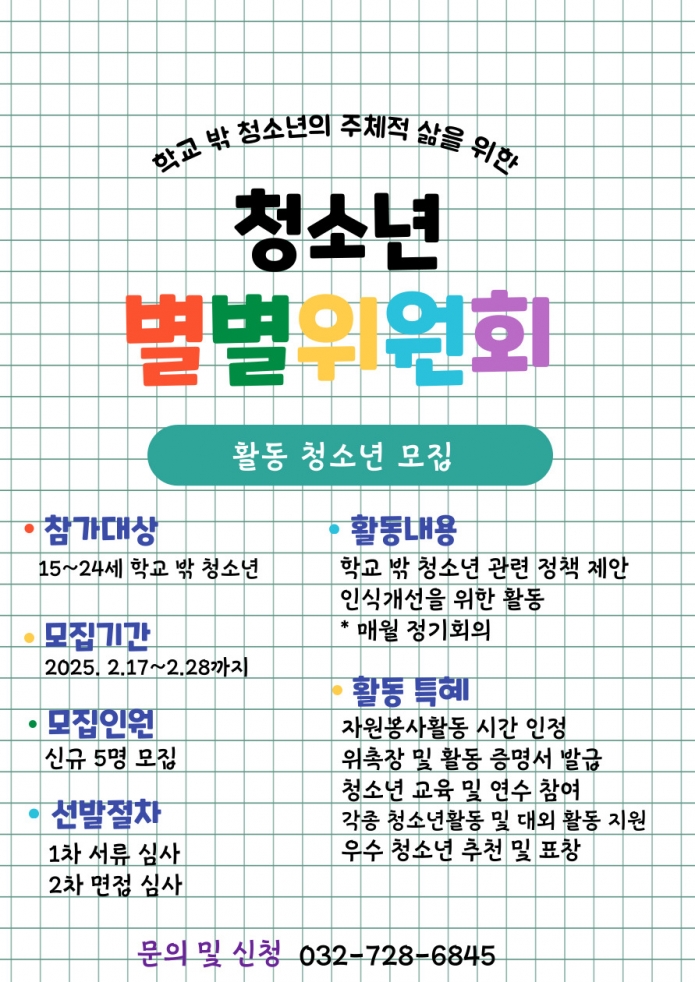 2025년 [학교밖청소년 별별위원회] 활동 청소년 모집