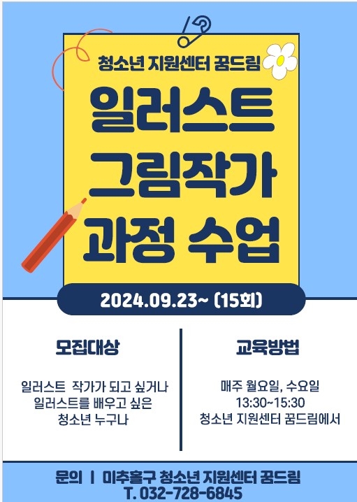 그림 작가를 꿈꾸는 청소년들을 위해 일러스트 그림작가 수업이 개설되었습니다.