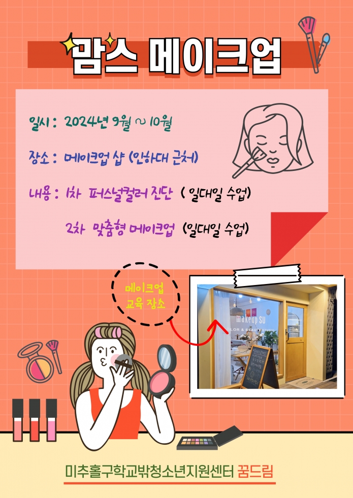 메이크업에 관심있는 꿈드림 친구들은 728-6845로 문의 주세요.