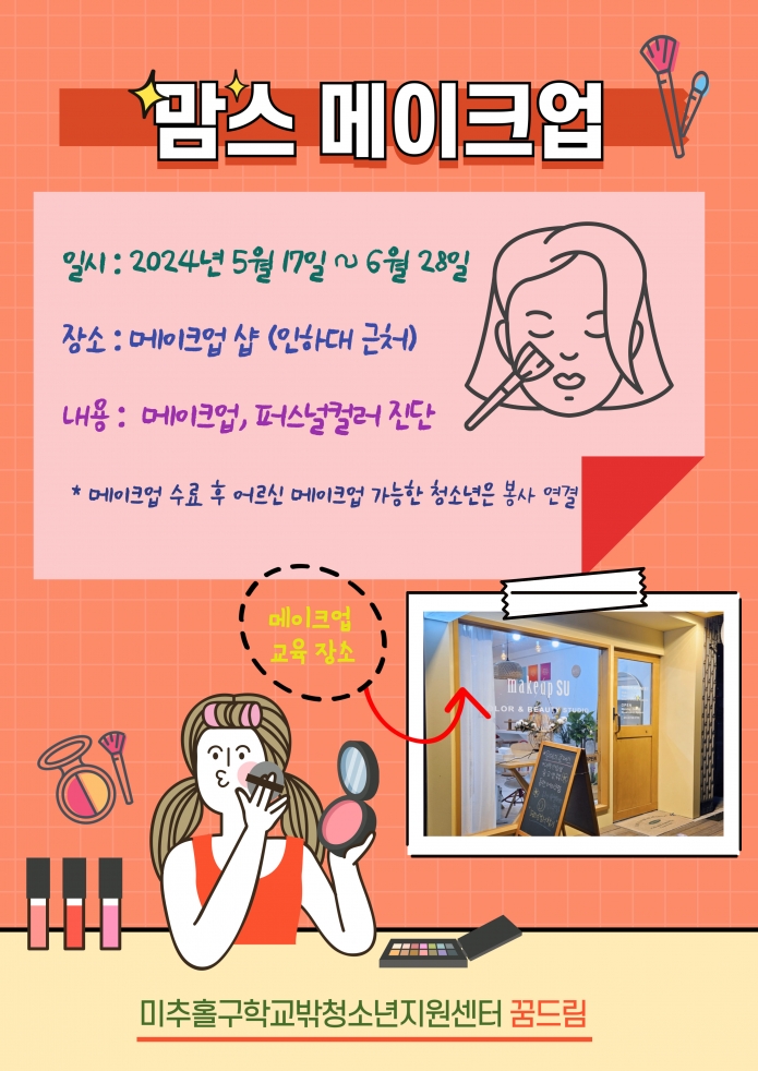 꿈드림에서 맘스메이크업(메으크업 교육) 참여자를 모집합니다.